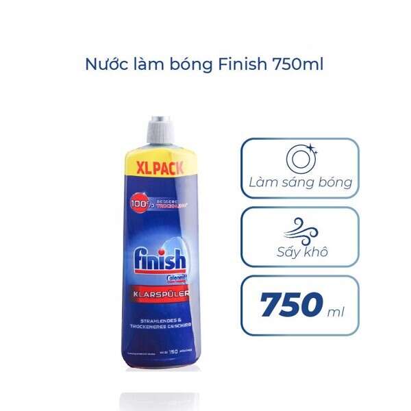 Không những thế chúng còn làm cho những dụng cụ nhà bếp không bị mờ khi rửa nhiều trong máy mà chúng sẽ trở nên sáng bóng và sạch sẽ hơn. Đặc biệt nước làm bóng và khô chén, đĩa Finish Dishwasher Shine & Dry Regular sẽ hỗ trợ cho quá trình sấy khô được nhanh hơn, sáng bóng hơn, chén đĩa sẽ được sấy khô hoàn toàn và lưu lại hương thơm tươi mát dài lâu.